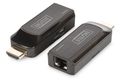 Das Mini HDMI Extender Set von DIGITUS verlängert die maximale Länge für HDMI-Kabel auf bis zu 50 m wobei nur ein einfaches Netzwerkkabel (Cat 6/6A) zwischen Sender- und Empfängereinheit genutzt wird. Unterstützt wird eine maximale Video-Auflösung von 1080p / 60Hz. Die Stromversorgung wird über das mitgelieferte Micro USB-Kabel gewährleistet, wobei nur eine Einheit mit Strom versorgt werden muss. Dank dieses Features sowie der ultra-kompakten Bauform lässt sich das Extender Set nahezu überall leicht und diskret positionieren. Platzieren Sie Ihre Bildschirm, wo immer Sie möchten.