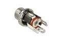 Spezifikation Anschlüsse: 1 x DC 5,5 x 2,5 x 9,5 mm Buchse > 3 x Lötanschluss Plastikgehäuse: PA66 Pin: Kupfer vernickelt Gewindetyp: 5/16" x 32W Einbautiefe: ca. 15,5 mm Befestigungslochdurchmesser: ca. 11,0 mm Sichtbare Höhe, wenn eingebaut: ca. 5,7 mm Spezifikation des Stromanschlusses Maße: innen: ø ca. 2,5 mm außen: ø ca. 5,5 mm Packungsinhalt DC Einbaubuchse