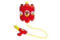 Spritzreichweite bis zu 7 m Kann wie ein Rucksack auf dem Rücken getragen werden Mit ca. 2,5 Liter Wassertank Schlauch ca. 72 cm lang Wasserspritze mit coolem Feuerwehr-Design Spritzfunktion Schultergurte verstellbar