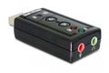 Der USB Sound Adapter von Delock erweitert den Computer um eine zusätzliche Soundkarte. Es können Kopfhörer oder Lautsprecher angeschlossen werden. Der Audioausgang verfügt über einen Comboanschluss und kann somit als herkömmlicher analoger Stereo Ausgang oder als optischer digitaler (S/PDIF) Ausgang genutzt werden. Der Adapter kann Audio Dateien mit bis zu 24 bit / 96 kHz wiedergeben sowie aufzeichnen.