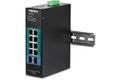 10-Port industrieller verwalteter Gigabit L2 PoE+ DIN-Rail Switch von TRENDnet, Modell TI-PG102i, verfügt über acht Gigabit PoE+ Ports mit einer Gesamtleistung in Höhe von 240 Watt und beinhaltet zwei SFP Slots, die sowohl 100Base-FX als auch 1000Base-FX Module für Langstrecken-Faseranwendungen unterstützen. Der gehärtete Schalter ist mit einem Metallgehäuse nach Schutzart IP30 ausgestattet, das einem hohen Grad an Vibration und Schock standhält und in einem weiten Temperaturbereich von -40° - 75° C (-40° - 167° F) für industrielle Umgebungen arbeitet. Fortschrittliche Verkehrsmanagementkontrollen, Fehlerbehebung und SNMP-Überwachung machen dieses Gerät zu einer leistungsstarken Lösung für KMU-Netzwerke.