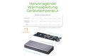 Durch die patentierte Kühlplatte wird die entstehende Abwärme der SSD an das Gehäuse weitergegeben und die SSD somit optimal gekühlt. Dies verhindert die sonst übliche, vorzeitige Reduzierung der Übertragungsrate zum Schutz vor Überhitzung. Mit dem IB-1817M-C31 können Daten also dauerhaft mit maximaler Übertragungsrate von bis zu 10 Gbit/s von A nach B gesendet werden.