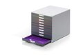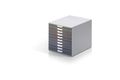 Formschöne und innovative Schubladenbox mit 10 farbigen Schubladen in sehr hochwertiger Kunststoffqualität. Feine Farblinien dienen bei geschlossenen Schubladenfronten als Organisations- und Orientierungshilfe. Geräuschfreier Schubladenleichtlauf mit Auszugssperre. Für Formate bis DIN A4, C4 sowie Folio- und Letter-Size-Format. Mit beiliegenden transparenten Beschriftungsfenstern und computerbeschriftbaren, leicht auswechselbaren Einsteck-Etiketten. Stapelbar über rutschfeste Kunststoff-Füßchen. Geeignet für den Einsatz in Reihenaufstellung in allen Standard-Büroschränken und Sideboards.