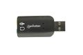 Der Manhattan Hi-Speed USB 3D Sound Adapter ist ideal für PCs und Notebooks, wo er an einem USB-Port Mikrofoneingang und Audioausgang zur Verfügung stellt. Schließen Sie Headset, Mikro oder Lautsprecher über Kabel mit 3,5-mm-Stereostecker an, deren Anschluss auf der Rückseite oft schwer zu erreichen ist – dieses Problem haben Sie mit diesem Adapter nicht. Plug&Play-Installation und Hot-Swap-Fähigkeit umgehen defekte Soundkarten und Audio-Ports und verbessern den Zugriff ohne spezielle Treiber oder Software. Ein integrierter Leistungsverstärker wird direkt über USB mit Strom versorgt, was externe Netzteile oder zusätzliche Kabel überflüssig macht. Unterstützung von 3D-Audio und Virtual 5.1 Surround Sound sowie integrierte Soundeffekte mit 10-Band-Equalizer sorgen für satte, High-Quality-Klangerlebnisse mit USB-Komfort und -Funktionalität.