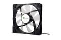 Der laufruhige 120mm Lüfter von Argus sorgt mit seinen gummierten Auflagen in den Lüfterecken, auf beiden Seiten des Lüfters, für einen vibrationsfreien Betrieb und lässt so die Option offen, ob der Lüfter kühle Luft ansaugen oder die warme Luft aus dem Gehäuse pusten soll.