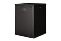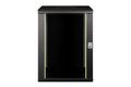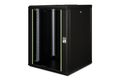 Die Netzwerkschränke zur Wandmontage der Unique Serie wurden für eine besonders komfortable und flexible Netzwerkverkabelung entwickelt. Im Dach eines jeden Schrankes befindet sich ein aufschiebbarer Kabeleinlass mit Moosgummidichtung. Die Rückwand und das Bodenblech sind ausgestattet mit ausgestanzten Kabeleinlässen mit Kunststoffabdeckung. Für die Aufnahme eines Lüftermoduls wird das Dachchassis ebenfalls mit einem ausgestanzten Bereich versehen. Zwei Paar galvanisierte, mit in beide Richtungen ablesbare Höheneinheiten beschriftete 483 mm (19")-Profilschienen sind im Inneren verbaut. Diese lassen sich in der Tiefe verstellen. Jeder Schrank ist eine robuste Stahlkonstruktion aus bis zu 1,5 mm starkem Stahlblech. Die Farbgebung erfolgt in Form von elektrostatischer Pulverbeschichtung in den Standardfarben Grau (RAL 7035) und Schwarz (RAL 9005). Modular abschließ- und abnehmbare Seitenwände sowie die abschließ- und abnehmbare Fronttür, verbessern die Zugänglichkeit. Ein Türanschlagswechsel kann vorgenommen werden. Die Wandmontage erfolgt in zwei einfachen Arbeitsschritten: Die Rückwand des Gehäuses wird an die Wand geschraubt und im Anschluss mit dem Gehäuse verbunden. Mit optional erhältlichen Nivellierfüßen oder Rollen, können die Wandgehäuse der Unique Serie ebenfalls freistehend verwendet werden.