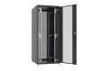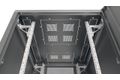 19" Serverschrank entsprechend DIN41494 Stahlblechgehäuse mit verschraubtem Rahmengestell, komplett vormontiert, eigenbelüftet, zerlegbar Innenseitig vorne und hinten 4 x 19" Streben (2 vorn, 2 hinten), verzinkt, stufenlos tiefenverstellbar Gegenläufige Nummerierung der Höheneinheiten an den 19" Profilen Front- und Rücktür mit 3-Punkt-Schwenkhebelgriff (bis 24HE 1-Punkt), abschließbar, inkl. Profilhalbzylinder nach DIN18252 / EN 1303 Profilhalbzylinder bauseitig austauschbar (30/10 mm) Türanschlag bei Front- und Rücktür links- und rechtsseitig möglich Abnehmbare Seitenwände mit 2 x Vorreiberverschluss (gleichschließend mit Türschloss)