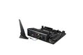 Der ungewöhnliche Mini-DTX-Formfaktor des Impact wurde bewusst gewählt. Viele Mini-ITX-Gehäuse bieten genügend Platz für eine Dual-Slot-Grafikkarte. Das bedeutet, dass sich unter dem unteren PCIe®-Steckplatz normalerweise ungenutzter Platz befindet – Platz, der genutzt werden kann, um weitere Komponenten zu installieren oder zusätzliche Features zu integrieren. Das Impact ist geringfügig größer als ein Mini-ITX-Mainboard, passt aber dennoch in den Großteil der Mini-ITX-Gehäuse. Den zusätzlichen Platz auf der Platine nutzen die ROG-Ingenieure, um weitere Features einzubauen.