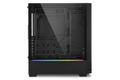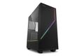 Lass die Farben fließen – mit dem RGB FLOW von Sharkoon! Mit seinem Seitenteil aus gehärtetem Glas, dem schwarzen Grundton und der klaren Form präsentiert sich das Midi-ATX-Gehäuse elegant-unauffällig. Das minimalistische Design wird jedoch von einem Fluss aus satten Farben aufgebrochen, der sich durch zwei integrierte LED-Streifen von der Front ins Seitenteil ergießt und so der verbauten Hardware einen atmosphärischen Anstrich verleiht. Das RGB FLOW ist aber nicht nur ein Hingucker: Mit einem Mesh-Gitter in der Front, sechs Plätzen für Lüfter oder einem Radiator sowie zahlreichen Installationsmöglichkeiten für Festplatten ist es ein optimales Zuhause für deine Hardware.Immer im FLOW bleiben. Das RGB FLOW ist mit zwei adressierbaren LED-Streifen ausgestattet, die Front und Seitenteil optisch verbinden. Beide LED-Streifen können in Reihe geschaltet und ganz einfach mit der im Gehäuse montierten RGB-Steuerung für bis zu vier Geräte in vierzehn Modi beleuchtet werden. Alternativ lassen sich die LED-Streifen sowie drei weitere LED-Elemente mit einem passenden RGB-Anschluss mit 5V-D-Coded-G- oder 5V-D-G-Pinbelegung auch über die Mainboard-Software und die Reset-Taste steuern.Optimaler Air-FLOW. Unterhalb des LED-Streifens ist die Front des Midi-ATX-Gehäuses mit einem dezenten Mesh-Gitter versehen, das eine optimale Luftaufnahme gewährleistet. Ein vorinstallierter 120-Millimeter-Lüfter sorgt für einen ansprechenden Airflow. Bei Bedarf können bis zu fünf weitere Lüfter zusätzlich installiert werden. Zwei weitere 120-Millimeter-Lüfter finden in der Front Platz, ein weiterer an der Rückseite und bis zu zwei weitere an der Gehäuseoberseite. Trotz der kompakten Bauweise bietet das RGB FLOW auch Platz für Radiatoren: 6,4 Zentimeter sind dafür in der Gehäusefront vorgesehen, 5,5 Zentimeter in der Gehäuseoberseite.Seitenfenster mit RGB-Highlight. Das RGB FLOW bietet ein Seitenteil aus gehärtetem Glas, hinter dem man die verbaute Hardware jederzeit sehen kann. Das Seitenteil kommt ohne eine offensichtliche Halterung aus und ist nur an der Rückseite des Gehäuses dezent mit einfach zu lösenden Rändelschrauben befestigt. Zusätzlich wird die Hardware durch den unterhalb des Fensters angebrachten LED-Streifen ins rechte Licht gerückt und je nach gewähltem Effekt mehrfarbig beleuchtet.Kompaktes Design mit Netzteil-Tunnel. Das RGB FLOW ist kompakt designt und macht überall eine gute Figur, ohne dass Kompromisse bei der Kompatibilität gemacht werden müssen. Grafikkarten mit einer Länge von bis zu 35 Zentimetern haben unterhalb eines CPU-Kühlers mit einer Höhe von bis zu 15,7 Zentimetern Platz. Netzteile mit einer maximalen Länge von 21,5 Zentimetern können unauffällig im Netzteil-Tunnel an der Gehäuseunterseite verschwinden.Variabler Festplatten-Einbau. Auch beim Einbau von Festplatten müssen mit dem RGB FLOW keine Abstriche gemacht werden: Das Gehäuse nimmt bis zu sechs SSDs auf, die auf dem Netzteil-Tunnel oder an der Rückseite des Mainboardtrays montiert werden können. Für SSDs sowie 3,5-Zoll-Festplatten steht ein Festplattenkäfig im Netzteil-Tunnel bereit, der bei Bedarf ganz einfach entfernt werden kann.