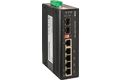 Hochqualitativer und robuster Switch mit vier Ports 10/100/1000TX PoE+ einem Port 10/100/1000TX ohne PoE und zwei 100/1000 SFP-Buchten. Der Switch ist speziell für ein industrielles Umfeld entwickelt und eignet sich bestens im Einsatz für Videoüberwachungsnetzwerke. Es lassen sich bis zu vier IP-Kameras auch mit sehr hoher Auflösung an den Switch anschliessen und durch das PoE+ auch direkt durch den Switch speisen. Der Uplink zu einer Videozentrale kann über Kupfer oder durch zwei optionale SFP über Glasfasern erfolgen. Der SFP kann wahlweise für Multimode oder Singlemode, ein oder zwei Fasern bestückt werden. Durch die erweiterte Betriebstemperatur eignet sich das Gerät für die Montage im Aussenbereich. Die Montage ist dank der Haltevorrichtung für Tragschienen sehr schnell und einfach. Auch die Wand- , bzw. Tischmontage ist durch mitgelieferte Halteplatten möglich. Die elektrischen und optischen Anschlüsse sind durch normierte Stecker RJ45 bzw. LC sichergestellt.
