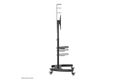 Der Neomounts Bodenständer, das Modell PLASMA-M1900E, ist ein mobiler Bodenständer für Flachbildschirme und Flachbild-Fernseher bis 70" (178 cm). Dieser mobile Ständer ist eine großartige Wahl für platzsparende Platzierung oder wenn Wand-, Deckenmontage oder Schreibtisch Platzierung keine Option sind. Diesen Wagen können Sie in mehreren Räumen in Ihrem Standort nutzen Gibt Ihnen die optimale Positionierung für sowohl stehende als sitzende Zuschauer, in jeder Anwendung, in jedem Teil von Ihrem Standort. Neomounts neig- (20°), und drehbare (90°) Technologie ermöglicht es die Halterung auf jedem Betrachtungswinkel zu ändern, um im vollem Umfang der Möglichkeiten ihres Flachbildschirms zu profitieren. Die Halterung ist manuell höhenverstellbar von 130 bis auf 162 Zentimetern. Intelligentes Kabelmanagament verdeckt und führt Kabel von der Halterung zum Flachbildschirm. Neomounts' Bodenständer PLASMA-M1900E hält Ihren Fernsehe und AV-Geräten. Die Rollen erlaubt ihnen das Stativ dorthin zu bewegen wo Sie es brauchen. Der Trolley ist mit vier massiven Lenkrollen ausgestattet, von denen die beiden vorderen Rollen mit einer Bremse ausgestattet sind. Rollen Sie diesen Wagen leicht durch Türen und über Schwellen. Neomounts PLASMA-M1900E eignet sich für Bildschirme bis 70" (178 cm). Die Tragfähigkeit dieses Produkt ist 50 kg für einen Bildschirm. Das Stativ eignet sich für Bildschirme mit VESA 200x200 bis 600x400mm Lochmuster. Verschiedene andere Lochmuster können, unter Verwendung von Neomounts VESA Adapterplatten, abgedeckt werden. Zügige Montage und Installation. Befestigungsmaterial im Lieferumfang enthalten.