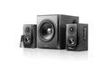 Edifier S351DB. Audio Kanäle: 2.1 Kanäle, RMS-Leistung: 150 W, Produktfarbe: Schwarz. Verstärkung Gerätetyp: Verstärker, Verstärkungsgerät Formfaktor: Eingebaut, Verstärker Frequenzbandbreite: 40 - 20000 Hz. Satelliten Effektivwert Energie: 80 W, Satellitenlautsprecherfrequenzbereich: 160 - 20000 Hz, Hochtönerdurchmesser Satellitenlautsprecher: 2,54 cm (1"). Subwoofer-Treiberdurchmesser (imperial): 20,3 cm (8"), Subwoofer Abmessungen (WxDxH): 265 x 289 x 312 mm. Energiequelle: AC, AC Eingangsspannung: 100 - 240 V, AC Eingangsfrequenz: 50 - 60 Hz