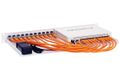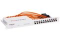 Die Montage dauert etwa 5 Minuten. Schieben Sie einfach Ihr Fortinet Gerät in das Kit, platzieren Sie die Halterungen, verbinden Sie die mitgelieferten Kabel und fixieren Sie die Stromversorgung an dem Gestell.