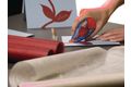 - Rötlicher Klebstreifen macht bereits aufgetragenen Kleber sichtbar