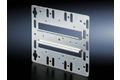 Verschraubbar, mit integrierter Hutschiene zum direkten Aufrasten von Komponenten wie Drehzahlregler, Schaltschrank-Innentemperaturregler und Hygrostat.