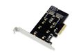 Dieser 2-in-1-M.2-SSD-PCIe-Adapter ist eine multifunktionale NVMe-Wandlerkarte, die NVMe-SSDs mit PCIe-Protokoll zur direkten Verbindung mit dem Motherboard oder VNMe-SSDs zur Verbindung mit dem SATA-Anschluss des Motherboards über ein SATA-Kabel unterstützt. Zudem verfügt er über ultraschnelle PCI-Express-3.0 X4-Lanes, überträgt eine Bandbreite bis 32 GT/s sowie Serial ATA v3.0 zur Übertragung bei Geschwindigkeiten bis 6 Gb/s. Dieser Adapter verbessert die Systemleistung und optimiert die Effizienz von Büro- und Unterhaltungsgeräten.