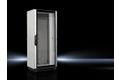 VX IT, geschlossen, für direkte schrankbezogene Klimatisierung. Praxisorientierte Ausrüstung und Vormontage inklusive. 19"-Innenausbau mit 19"-Großschwenkrahmen für einen direkten Zugriff auf die Rückseite der 19"-Komponenten dank einem Öffnungswinkel von 130°.