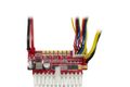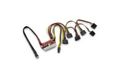 Die Platine ist ausgestattet mit dem 24Pin Hauptstromkabel, zwei Strängen mit je 1x Molex-Stecker, 2x S-ATA-Stecker und einem Strang mit 1x 4Pin- Stecker.