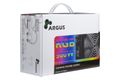 Die Revision II des Argus 500W RGB-Netzteils besticht durch die starken Lichteffekte der 21 RGB-LEDs des laufruhigen, 140mm Lüfters, die sich wahlweise manuell über einen Taster oder über die 3Pin 5V RGB-Mainboardsteuerung verwalten lassen. Das Seitenfenster aus Plexiglas mit eingraviertem Argus-Logo setzt Ihren Computer zusätzlich in Szene.