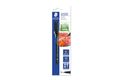 Universalstift für fast alle Oberflächen Für Overhead-Projektion geeignet Hervorragend wisch- und wasserfest auf fast allen Flächen Sekundenschnell trocken, daher ideal für Linkshänder Permanente, geruchsarme Tinte Schwarz ist lichtbeständig Schaft und Kappe aus PP garantieren lange Lebensdauer DRY SAFE - kann tagelang offen liegen ohne einzutrocknen Airplane safe - automatischer Druckausgleich verhindert das Auslaufen des Stiftes im Flugzeug Höchste Farbbrillanz Linienbreite M - Medium, ca. 1,0 mm Nachfüllbar mit der Tankstelle 487 17 Erhältlich in aufstellbarer STAEDTLER Bo x