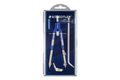 Zirkelset mit Hauptzirkel, Verlängerungsstange, Universaladapter und Ersatzteildose im Klappdeckeletui