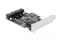 Die PCI Express Karte von Delock erweitert den PC um zwei interne USB 3.0 Pfostenstecker. An die Karte können verschiedene USB Geräte, wie z. B. Docking Stationen, Card Reader, externe Gehäuse etc., angeschlossen werden, mit Hilfe eines optionalen Kabels.