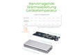 Durch die patentierte Kühlplatte wird die entstehende Abwärme der SSD an das Gehäuse weitergegeben und die SSD somit optimal gekühlt. Dies verhindert die sonst übliche, vorzeitige Reduzierung der Übertragungsrate zum Schutz vor Überhitzung. Mit dem IB-1817Ma-C31 können Daten also dauerhaft mit maximaler Übertragungsrate von 10 Gbit/s von A nach B gesendet werden.