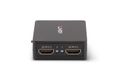 Lindy 38358. Video Porttyp: HDMI, Teilnehmerausgang: 2x HDMI. Maximale Auflösung: 3840 x 2160 Pixel, Produktfarbe: Schwarz, Gehäusematerial: Metall. Breite: 60,5 mm, Tiefe: 54 mm, Höhe: 20,5 mm. Verpackungsbreite: 133 mm, Verpackungstiefe: 105 mm, Verpackungshöhe: 24 mm. Mitgelieferte Kabel: USB