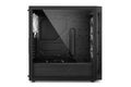 Auch auf die innere Schönheit kommt es an, weshalb das Gehäuse nahezu vollständig einsehbar ist. Während die verglaste Frontblende die leuchtenden Lüfter durchscheinen lässt, gewährt das aus gehärtetem Glas gefertigte Seitenteil einen Blick auf die verbaute Hardware. Damit die Optik nicht getrübt wird, sind auf der eleganten Oberfläche des Seitenteils keine sichtbaren Schrauben angebracht. Das Seitenteil wird einfach in den Rahmen eingehängt und muss zur Befestigung lediglich an der Rückseite zweifach verschraubt werden.