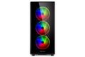 Drei frontal angebrachte LED-Lüfter beleuchten nahezu die gesamte Fläche der Vorderseite und verleihen dem TG5 Pro RGB damit seinen unvergleichlichen, strahlenden Look. Auch an der Rückseite ist ein weiterer Lüfter angebracht, der Licht ins Gehäuseinnere bringt. Über die Software kompatibler Mainboards mit einer Pinbelegung von 5V-D-Coded-G oder 5V-D-G lassen sich die LEDs gezielt ansteuern und individuell beleuchten. Fehlt dem verwendeten Mainboard ein entsprechender Anschluss, lassen sich zwanzig vorinstallierte Beleuchtungseffekte über eine manuelle Farbsteuerung in Betrieb nehmen. Durch eine an der Front platzierte Taste können diese bequem gewechselt werden.