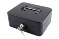 Aus Stahlblech mit stoßfester Pulverbeschichtung Zylinderschloss mit 2 Schlüsseln Herausnehmbare Schale mit 8 Fächern Geldprüfstift zum Testen von Euro, Dollar und Pfund