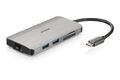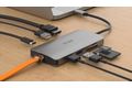 Erweitern Sie Ihren Laptop in Sekundenschnelle um ein Zweitdisplay, einen Dual-Slot SD- und microSD-Kartenleser, einen Gigabit-Ethernet-Port, drei USB-3.0-Ports, von denen einer über Schnellladung verfügt, sowie um einen USB-C-Port, indem Sie den Hub einfach an einen USB-C-Port anschließen.