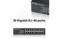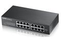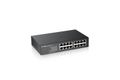 Zyxel GS1100-16. Switch-Typ: Unmanaged. Basic Switching RJ-45 Ethernet Ports-Typ: Gigabit Ethernet (10/100/1000), Anzahl der basisschaltenden RJ-45 Ethernet Ports: 16. MAC-Adressentabelle: 8000 Eintragungen, Routing-/Switching-Kapazität: 32 Gbit/s. Netzstandard: IEEE 802.1p, IEEE 802.3, IEEE 802.3ab, IEEE 802.3az, IEEE 802.3u, IEEE 802.3x, IEEE 802.3z. Wandmontage, Rack-Einbau