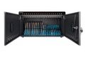 Diebe und Vandalismus haben keine Chance gegen das äußerst robuste Metallgehäuse dieses Ladeschranks. Ihre Geräte sind sicher unter Verschluss und Sie teilen den Zugriff über das beiliegende 2-Schlüssel-Set nur mit autorisiertem Personal. Die vertikal geteilte Doppeltür ist dabei ideal für enge Platzverhältnisse. Ein integrierter Lüfter und die perforierte Tür leiten Hitze effizient ab und halten alle Geräte kühl. Die Gummifüße garantieren rutschfesten Einsatz auf jeder Oberfläche.
