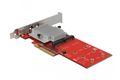 Diese PCI Express Karte von Delock erweitert den PC um zwei M.2 Slots. An diese können bis zu zwei M.2 SSDs im 2280, 2260, 2242 und 2230 Format angeschlossen werden.