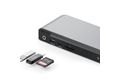 ALOGIC DX3. Übertragungstechnik: Kabelgebunden, Hostschnittstelle: USB 3.2 Gen 1 (3.1 Gen 1) Type-C, USB-Stromversorgung bis zu: 100 W. Ethernet LAN Datentransferraten: 1000 Mbit/s. Produktfarbe: Schwarz, Grau, Kompatible Speicherkarten: MicroSD (TransFlash), SD, Auflösung (maximal, digital): 5120 x 2880 Pixel. Energiequelle: AC, Stromversorgung: 135 W, Kompatible Steckertypen: AU, EU, UK, US. Breite: 190 mm, Tiefe: 90 mm, Höhe: 6,5 mm