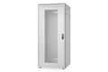 Die Netzwerkschränke der Unique Serie wurden für eine besonders komfortable und flexible Netzwerkverkabelung entwickelt. Mit Bürsten ausgestattete Einlässe im Dach- und Boden (ab 26HE und 800 mm Schrankbreite), ein aufschiebbarer Einlass im Bodenchassis mit Moosgummidichtung sowie rückseitige Bürstenleisten ober- und unterhalb der Rücktür (ab 26HE), ermöglichen einen vielseitigen Einsatz bei verschiedensten Anwendungsszenarien. Vertikale Kabelführungskanäle mit Blende, installiert neben den Profilschienen (ab 800 mm Schrankbreite), runden das Design ab. Ein abgesetzter, abnehmbarer Deckel mit Lüftungsschlitzen sorgt für eine verbesserte Luftzirkulation. Dieser sitzt über einer speziellen Konstruktion für die einfache Aufnahme eines Lüftermoduls. Zwei Paar galvanisierte, mit in beide Richtungen ablesbare Höheneinheiten beschriftete 483 mm (19")-Profilschienen sind im Inneren verbaut. Sie lassen sich in der Tiefe verstellen und sind mit zusätzlichen Tiefenstreben im Schrank verbunden. Jeder Schrank ist eine robuste Stahlkonstruktion aus bis zu 1,5 mm starkem Stahlblech. Die Farbgebung erfolgt in Form von elektrostatischer Pulverbeschichtung in den Standardfarben Grau (RAL 7035) und Schwarz (RAL 9005). Modular abschließ- und abnehmbare Seitenwände sowie Türen verbessern die Zugänglichkeit. Ein Türanschlagswechsel kann vorgenommen werden. Des Weiteren sind die Schränke auf Grund der zerlegbaren Konstruktion bei Bedarf komplett demontierbar.