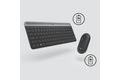 Die kabellose Logitech MK470-Kombination verfügt über eine kompakte, moderne Tastatur mit flachen Scheren-Tasten, einem Ziffernblock und einem für Windows optimierten Layout Das kabellose Tastatur- und Maus-Set enthält außerdem eine komfortable, beidhändig bedienbare 3-Tasten-Maus mit hochpräzisem optischen Sensor und mechanischem Scrollrad Die flüsterleise Tastatur und die laborgeprüfte, geräuschreduzierte Maus ermöglichen sowohl im Büro als auch zu Hause ein besonders leises Arbeiten Plug-and-Play-USB-Nano-Empfänger bietet eine starke 2,4-GHz-Wireless-Verbindung mit einer Reichweite von 10 m(1) (1) Die drahtlose Reichweite kann je nach Umgebungs- und Computerbedingungen variieren Die praktische Auto-Sleep-Funktion schont die Batterie und ermöglicht 36 Monate Tastatur- und 18 Monate Mausbetrieb(2) (2) Die Batterielaufzeit kann je nach Benutzer und Computerbedingungen variieren Aufgrund der ständigen Produktverbesserungen kann der Batteriedeckel der eleganten Tastatur glänzend oder matt sein PLATZSPAREND UND PRODUKTIV Die kompakte Tastatur verfügt über einen Ziffernblock und 12 Funktionstasten, sodass alle erforderlichen Tasten zur Verfügung stehen. Die schlanke Maus ist extrem mobil und lässt sich für produktives Arbeiten unterwegs problemlos in jeder Tasche verstauen. Dank des kompakten Profils der Slim Combo können Sie selbst auf Schreibtischoberflächen mit wenig Platz so arbeiten, dass sich die Maus immer in bequemer Reichweite befindet.