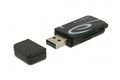 Dieser Card Reader von Delock verfügt über zwei Speicherkartenslots und ermöglicht das Lesen und Beschreiben von verschiedenen SD, MMC und Micro SD Speicherkarten. Über die USB Typ-A Schnittstelle wird der Card Reader an einen PC oder ein Notebook angeschlossen.