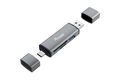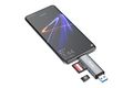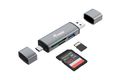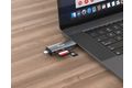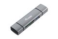 Der equip 245460 Kartenleser mit integriertem USB-Hub (OTG) kann wahlweise am Smartphone, Tablet oder Notebook angeschlossen werden, so können Sie auf eingesteckte Speichermedien wie z. B. USB-Sticks, SD- oder MircoSD-Speicherkarten zugreifen. Sie können das Gerät entweder über den USB A (USB 3.0) oder über den USB-C-Stecker des Hubs anschliessen. Die Installation von Treibern oder Apps ist dank Plug and Play nicht notwendig. Der USB-Hub kann zeitgleich mit dem Speicherkartenleser genutzt werden, so können auch Dateien zwischen beiden Anschlüssen verschoben oder kopiert werden