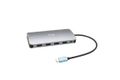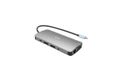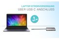 Kleine USB-C-Docking-Station aus Metall, an welche bis zu drei externe Bildschirme* angeschlossen werden können. Schließen Sie einfach Ihr Notebook bzw. Tablet an (es müssen keine Treiber installiert werden) und profitieren Sie vom schnellen USB-Datenkabel sowie vom schnellen Internetanschluss über LAN-Port, einschließlich der Anschlussmöglichkeit für Ihre Kopfhörer und Mikrofon. Natürlich wird auch die Stromversorgung Ihres Notebooks – bis zu 100 W – unterstützt. Dies bedeutet, dass Sie alle Notebooks und Tablets aufladen können, welche das Aufladen über USB-C (USB-C Power Delivery) unterstützen.