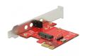 Diese PCI Express Karte von Delock erweitert den PC um eine M.2 Key E Schnittstelle. In die Karte können verschiedene M.2 Module mit USB und PCIe Signalen eingesetzt werden. An der M.2 Key A oder Key E Schnittstelle können z. B. WLAN, Bluetooth, GNSS, 3G, HSPA und NFC Module genutzt werden. Weiterhin ist es auch möglich bei einem Modul, welches z. B. WLAN und Bluetooth besitzt, beide Funktionen gleichzeitig zu nutzen. Die USB Module werden über den USB Anschluss der Karte mit dem System verbunden.