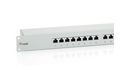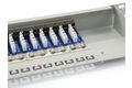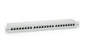 19" 1HE 24 x Geschirmte RJ45-Anschlüsse mit Gold-Blitzkontakt 45° Dual IDC (LSA and 110) kompatibel Entspricht ANSI / TIA / EIA 568 Standard IDC Farbe T568A / T568B codiert Klasse E nach ISO / IEC 11801 und EN50173 Stahlblechgehäuse mit Kabeleinführung Farbe: hellgrau (RAL 7035)