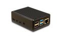 Das Gehäuse ist komplett aus Aluminium gefertigt und bietet, zusammen mit den beiden integrierten Wärmeleitern für CPU und RAM, ideale Wärmeleitfähigkeiten.