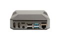 Dank der eingebauten Adapterplatte werden die externen Anschlüsse erweitert und befinden sich so allesamt auf der Rückseite des Gehäuses, was für eine saubere Anordnung sorgt. Zudem werden die GPIO-Pins erweitert, welche hinter einer magnetischen Abdeckung, auf der Oberseite des Gehäuses, frei zugänglich sind. Die Pin-Belegung der GPIOs wurde zudem praktisch unterhalb der Abdeckung aufgedruckt.