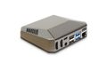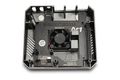 Das Gehäuse ist aus einer hochwertigen Aluminiumlegierung gefertigt, welche aktiv zur Wärmeableitung beiträgt. Zusätzlich sorgen zwei integrierte Wärmeleiter, die direkten Kontakt mit CPU und RAM haben, für eine optimale Wärmeabfuhr. Lüftungsschlitze in der Front und im hinteren Teil sowie ein vorinstallierter 30mm Lüfter unterstützen dabei aktiv.