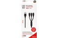 2GO 797153. Kabellänge: 1,5 m. Anschluss 1: USB B, Anschluss 2: USB C/Micro-USB B/Lightning, Produktfarbe: Schwarz