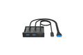 Frontblende mit 1x USB Type-C® und 2x USB Type-A Anschlüssen 1x USB Type-C® mit einer Datenübertragungsrate von bis zu 10 Gbit/s 2x USB Type-A mit einer Datenübertragungsrate von bis zu 5 Gbit/s Systemvoraussetzungen: 1x interner USB 3.0 Host (19-polig) Header , 1x interner USB 3.2 Gen 2 Key A Host (20-polig) Header Passt in einen Standard 3,5” (8,89 cm) Schacht Unterstützt Windows®