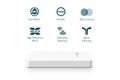Kabelgebundene Geräte wie VoIP-Telefone können ohne zusätzliche Stromkabel über PoE versorgt werden. Die vier Datenports (1 Uplink + 3 Downlinks) übertragen Daten mit Gigabit-Geschwindigkeit, sodass Sie mehrere Geräte mit Ihr Gigabit-Netzwerk verbinden können. Einer der Downlink-Ports bietet PoE-Pass-Through ‡ , um eine zusätzlichen Stromversorgung für das verbundene PoE-Gerät überflüssig zu machen.
