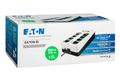 Eaton 3S850D. USV-Topologie: Standby (Offline), Ausgangskapazität: 0,85 kVA, Ausgangsleistung: 510 W. AC-Steckertypen: Typ F, Anzahl der AC-Ausgänge: 8 AC-Ausgänge. Akku-/Batterietechnologie: Plombierte Bleisäure (VRLA). Produktfarbe: Schwarz, Weiß, Kabellänge: 1,5 m. Zertifizierung: CE/EAC/Ukr/Cm/CB report